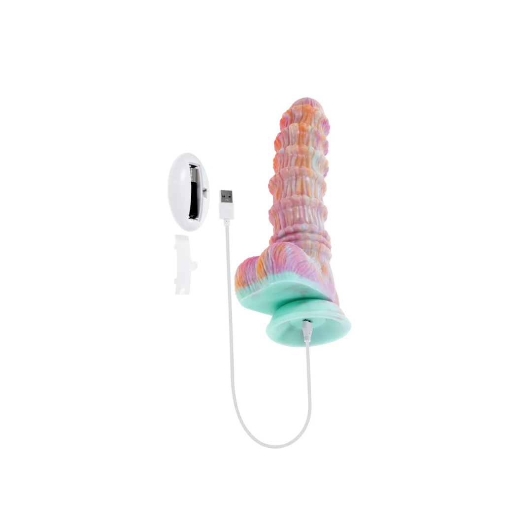 Este dildo de fantasía, hecho de silicona segura para el cuerpo, ofrece una vibración versátil (8 modos + Turbo), se recarga fácilmente vía USB magnético y cuenta con mando a distancia para controlar tus juegos a distancia.