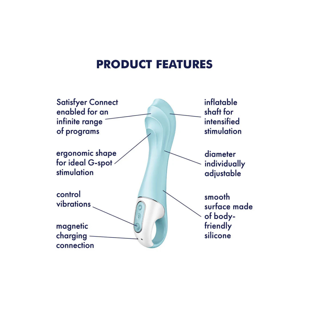 Descubre una nueva dimensión de placer con el Satisfyer Air Pump Vibrator 5+. Este vibrador punto G combina estimulación potente con una experiencia inflable innovadora que se adapta a ti: comienza con una forma delgada y suave, y en cuestión de segundos se expande hasta 15 mm (1.5 cm) de diámetro con solo presionar un botón, ofreciéndote una sensación de plenitud profunda perfectamente a tu medida.