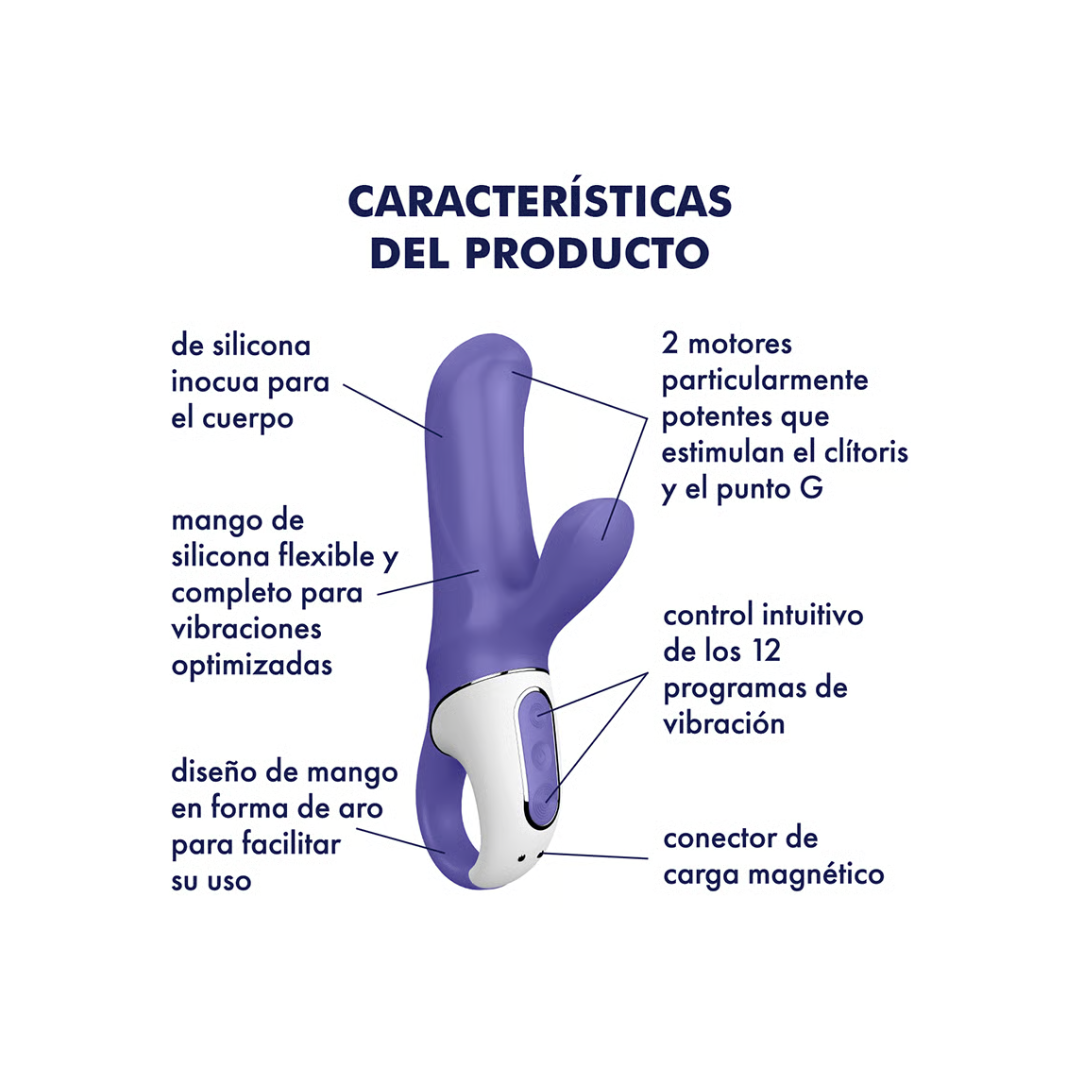 Descubre el equilibrio perfecto entre diseño compacto y placer intenso con el Satisfyer Magic Bunny. Este vibrador tipo rabbit está diseñado para brindar una estimulación dual envolvente: su forma curvada alcanza con precisión el punto G, mientras que su brazo externo acaricia el clítoris con delicadeza y potencia.