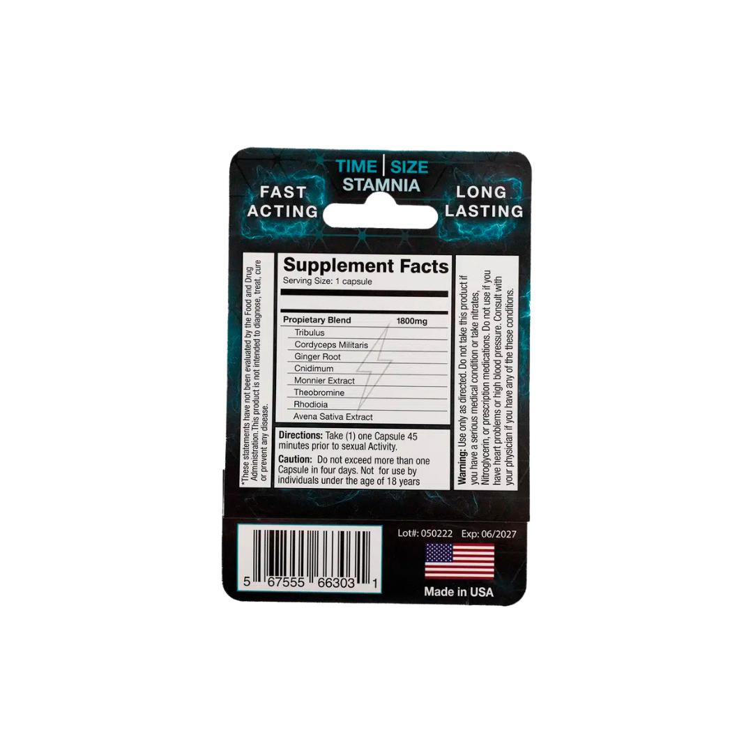 Uso sugerido: Tomar 1 cápsula con agua, 30 minutos antes de la actividad deseada. No exceder 1 cápsula en un periodo de 72 horas.